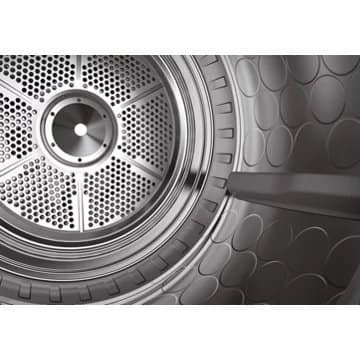 - Matière du tambour : inox, ou acier inoxydable, résiste parfaitement à l’humidité et ne rouille pas.