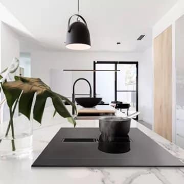 - Interconnexion table/hotte : Oui. Une fois la table de cuisson active, l’éclairage de la hotte compatible s’enclenche et règle la puissance d’aspiration en automatique.