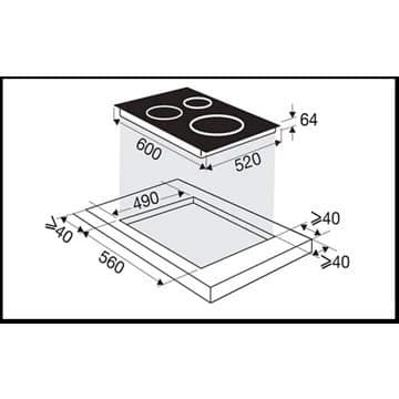 - Encastrement standard : L 55,8 cm