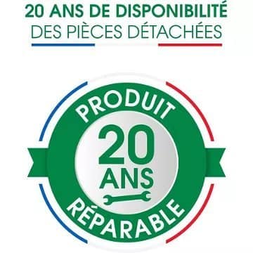 - Disponibilité des pièces détachées (données fournisseur) : Pendant 20 ans, à compter de la date d’achat
