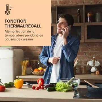 - Sécurités : arrêt automatique, anti surchauffe, verrouillage du clavier, témoin de chaleur résiduelle, détection d’absence de récipient, témoin de mise sous tension